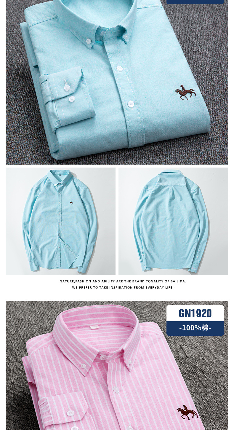 100% Cotton Oxford Shirt For Men's Long Sleeve Solid Casual Business Regular-Fit Formal Dress Shirts Social Blouse Male Clothes