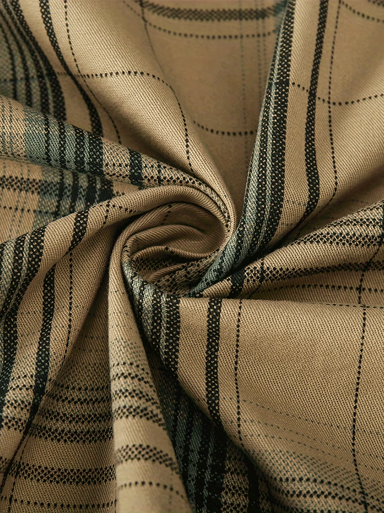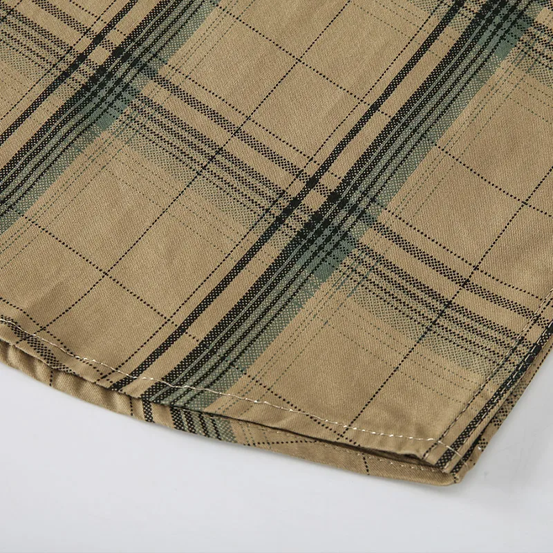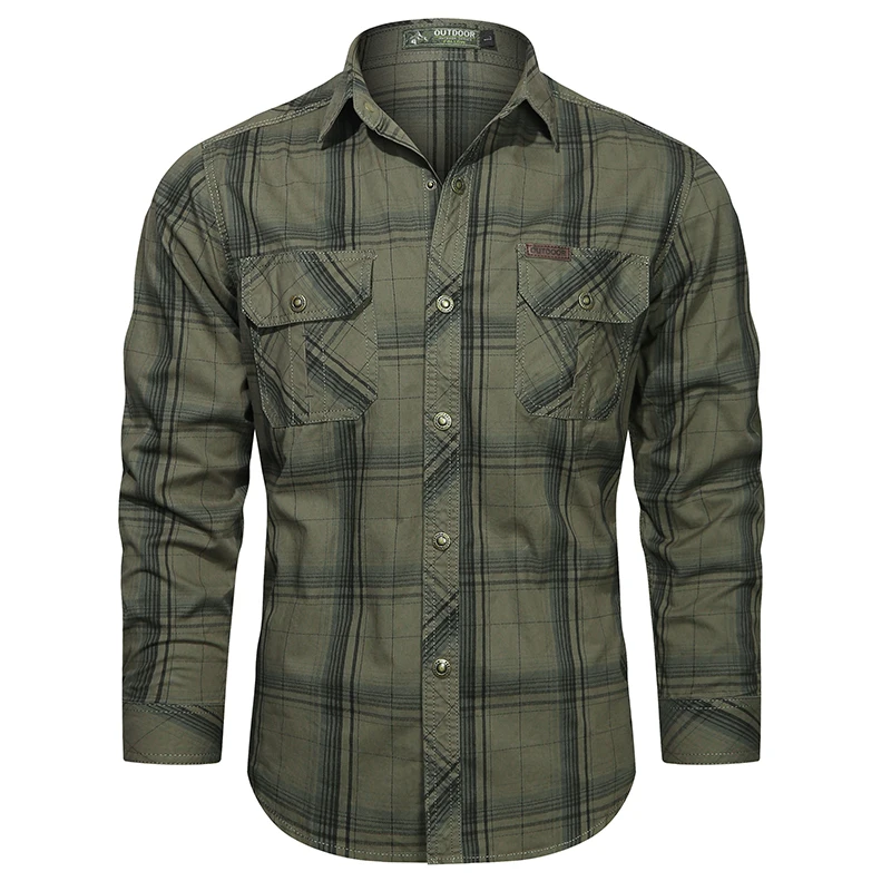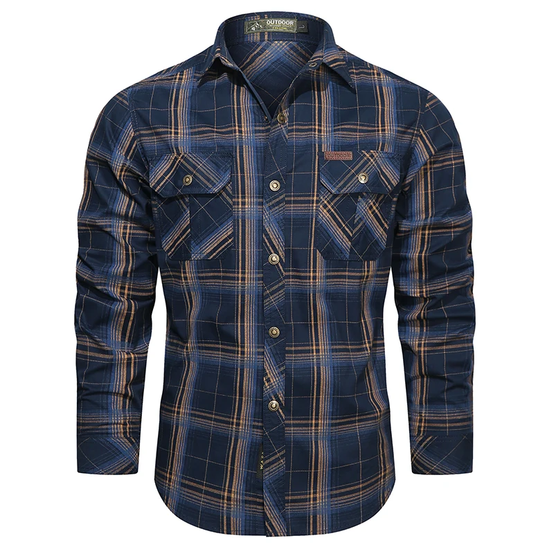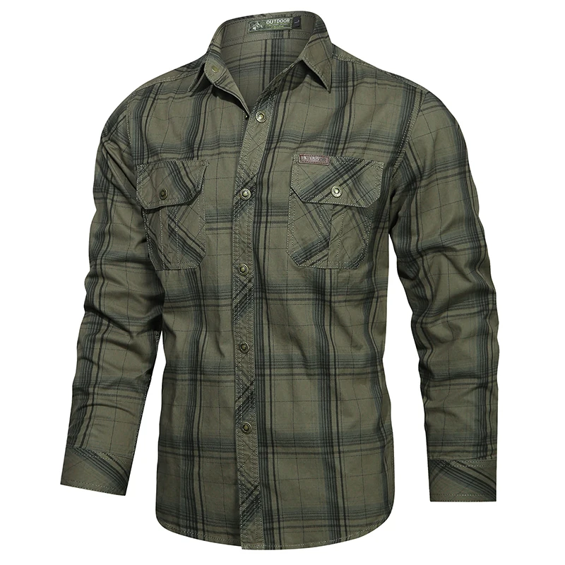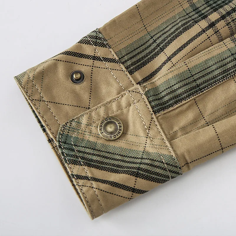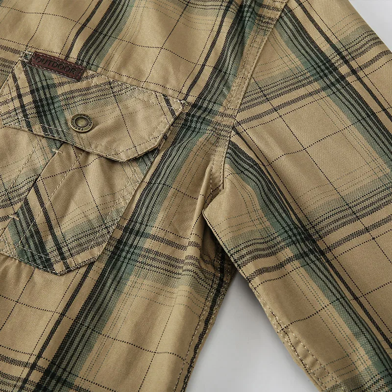 2024 New Plaid Shirt for Men Long Sleeve Striped Outdoor Casual Shirts Turn-down Collar 2-Pokcet Cargo Shirts High Quality Tops