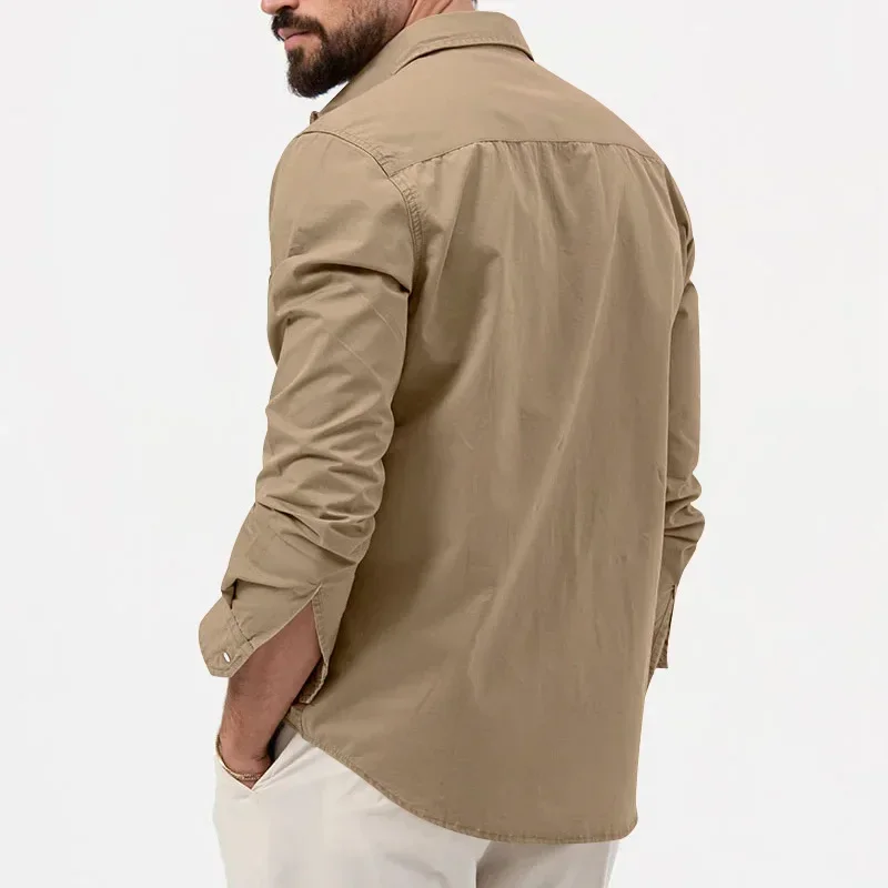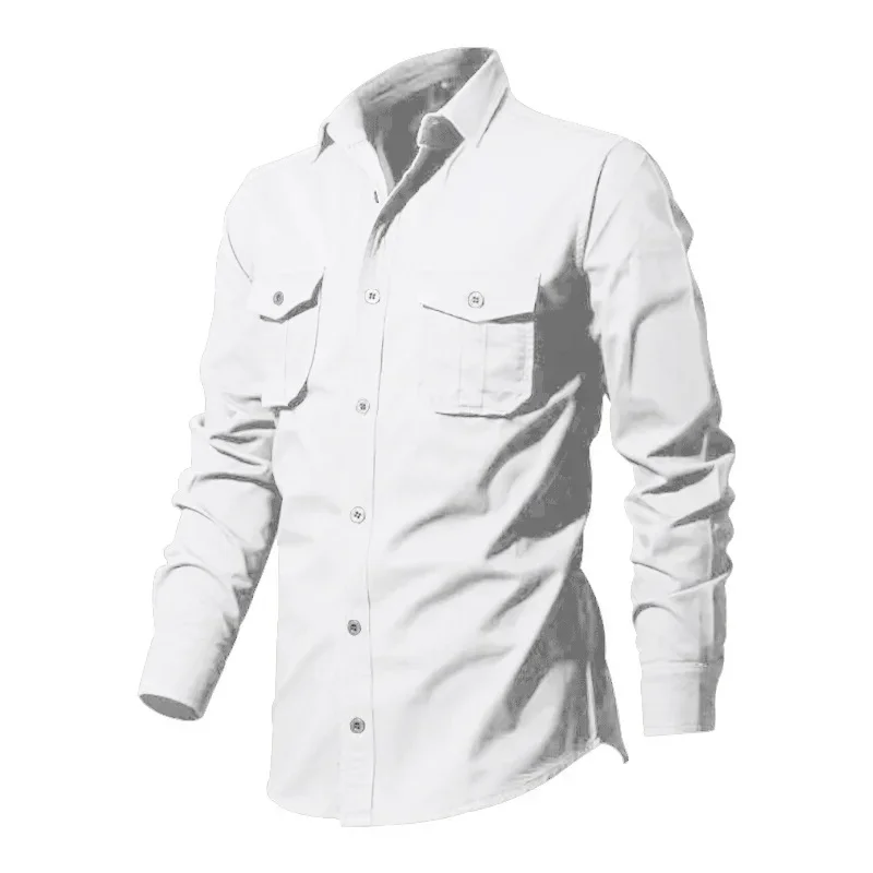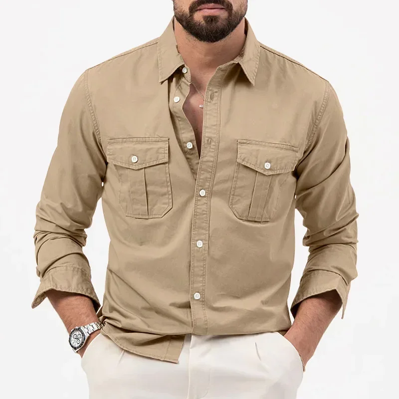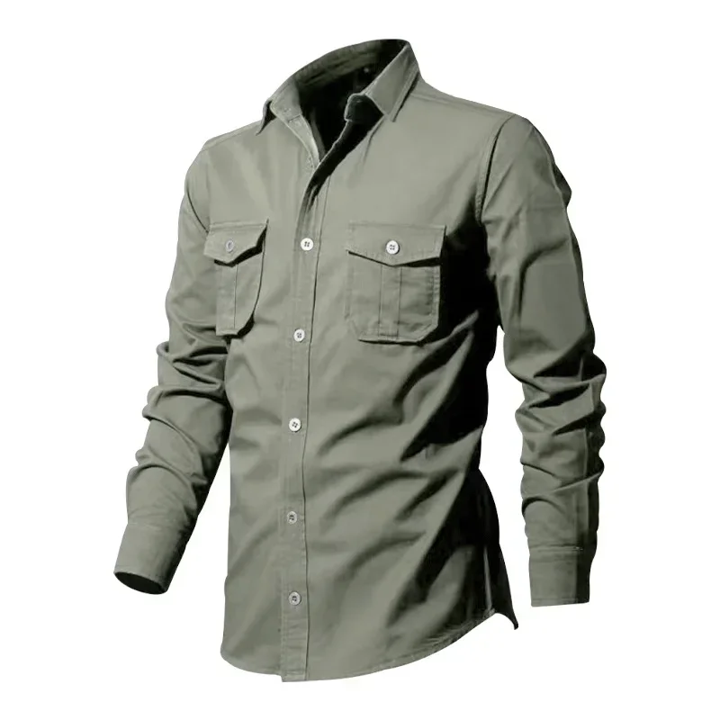 Army Green Tactical Cargo Shirts For Men Chest Two Pockets Long Sleeve Mens T-Shirt 2024 Trend Casual Loose Shirt Chemise Hombre
