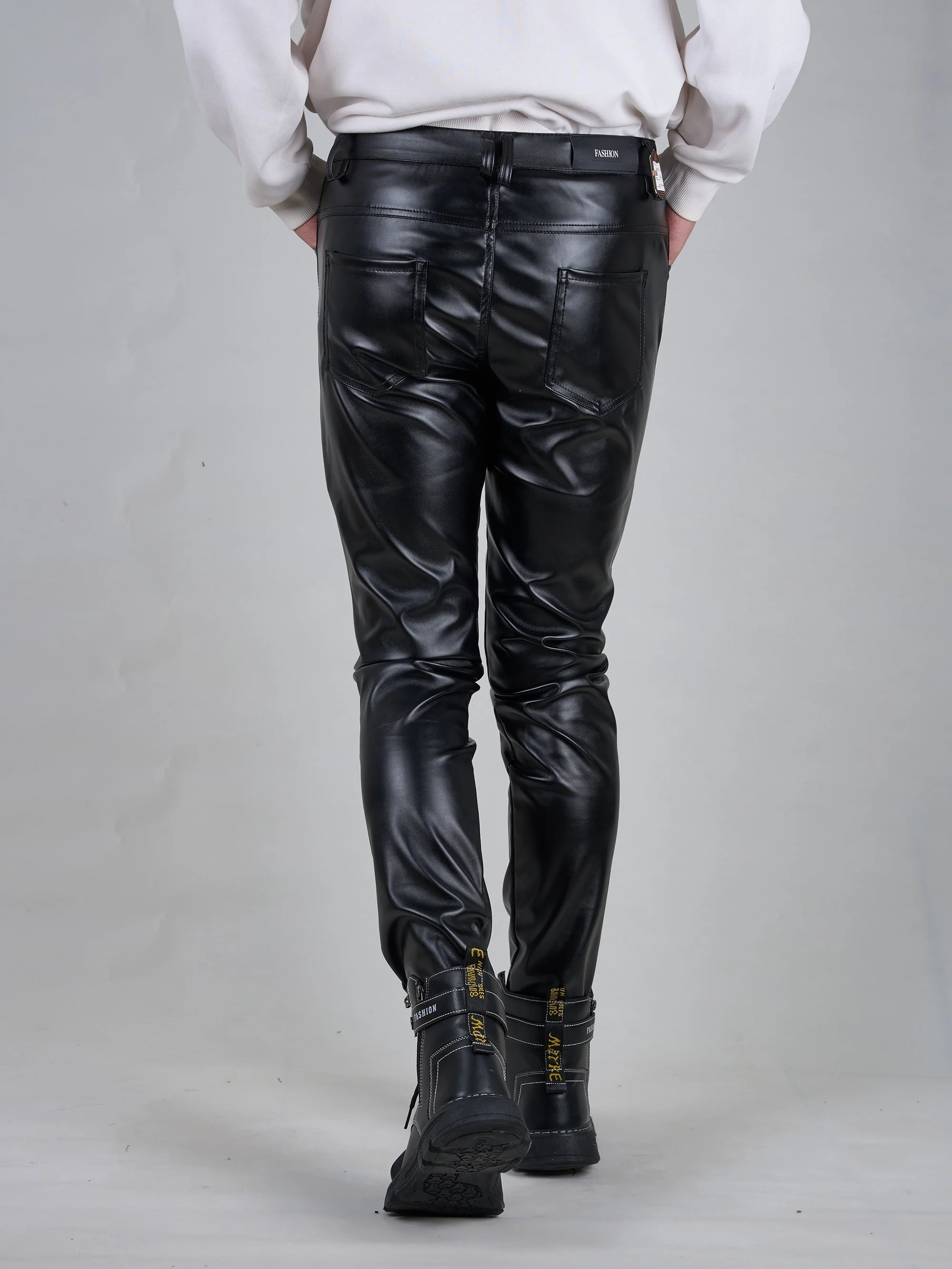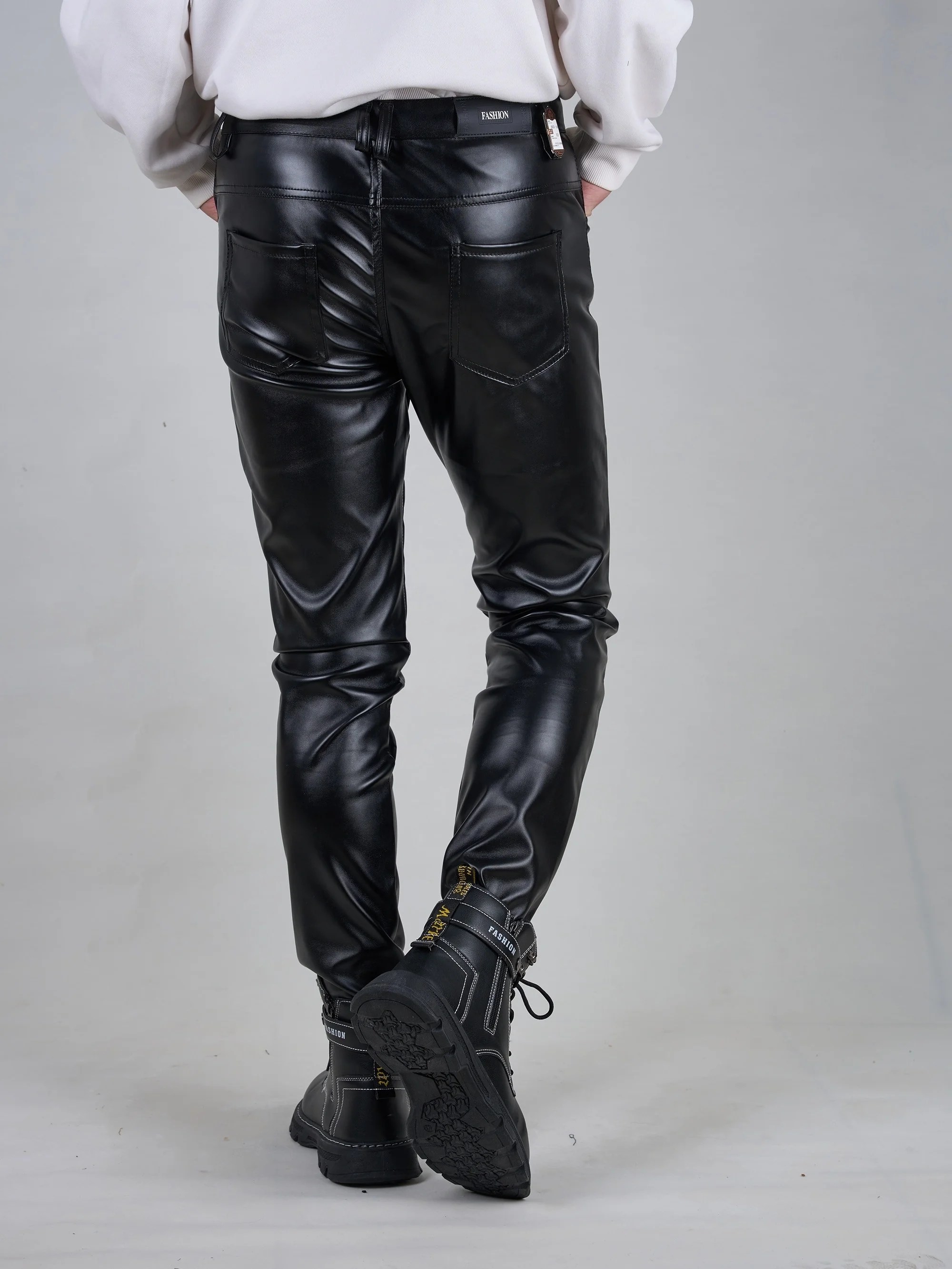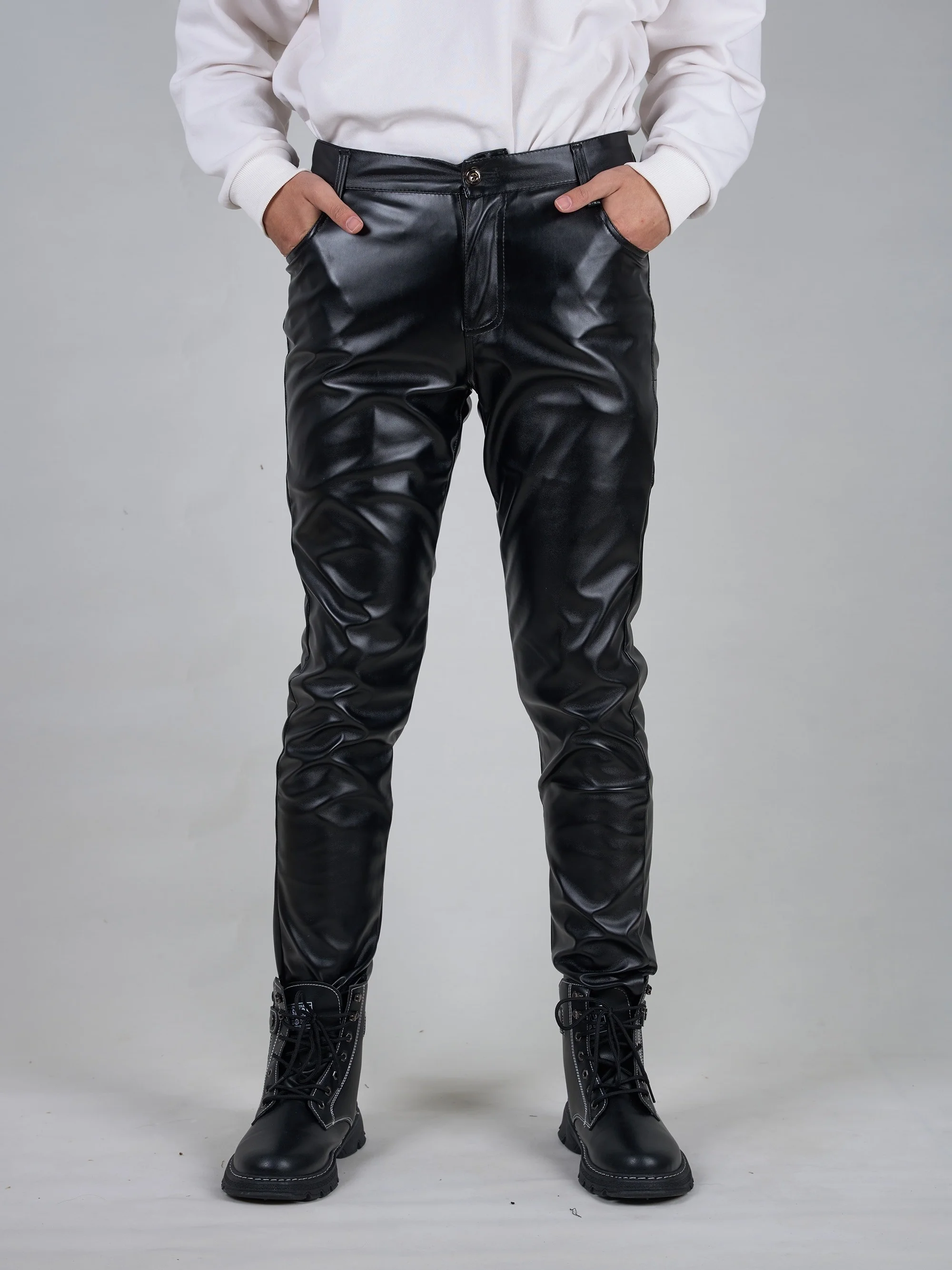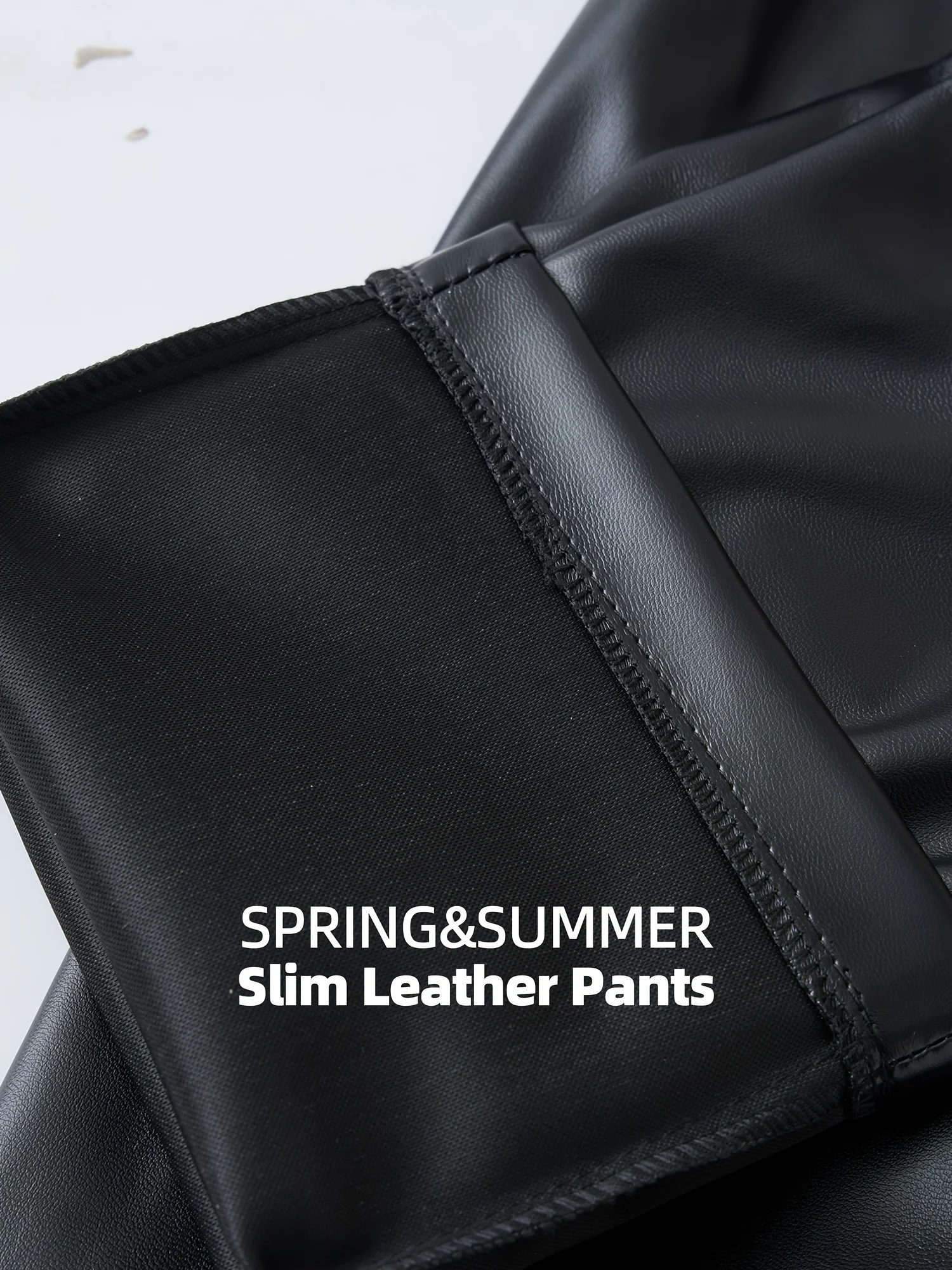 Elevate Spring Wardrobe: Men's Slim-fit PU Leather Pants with Pockets - Versatile & Breathable for Fashion-Forward Gents