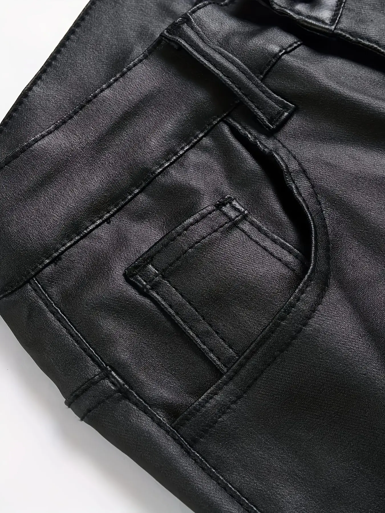 Crafted from premium black leather, these pants offer durability and a luxurious feel for the modern man.