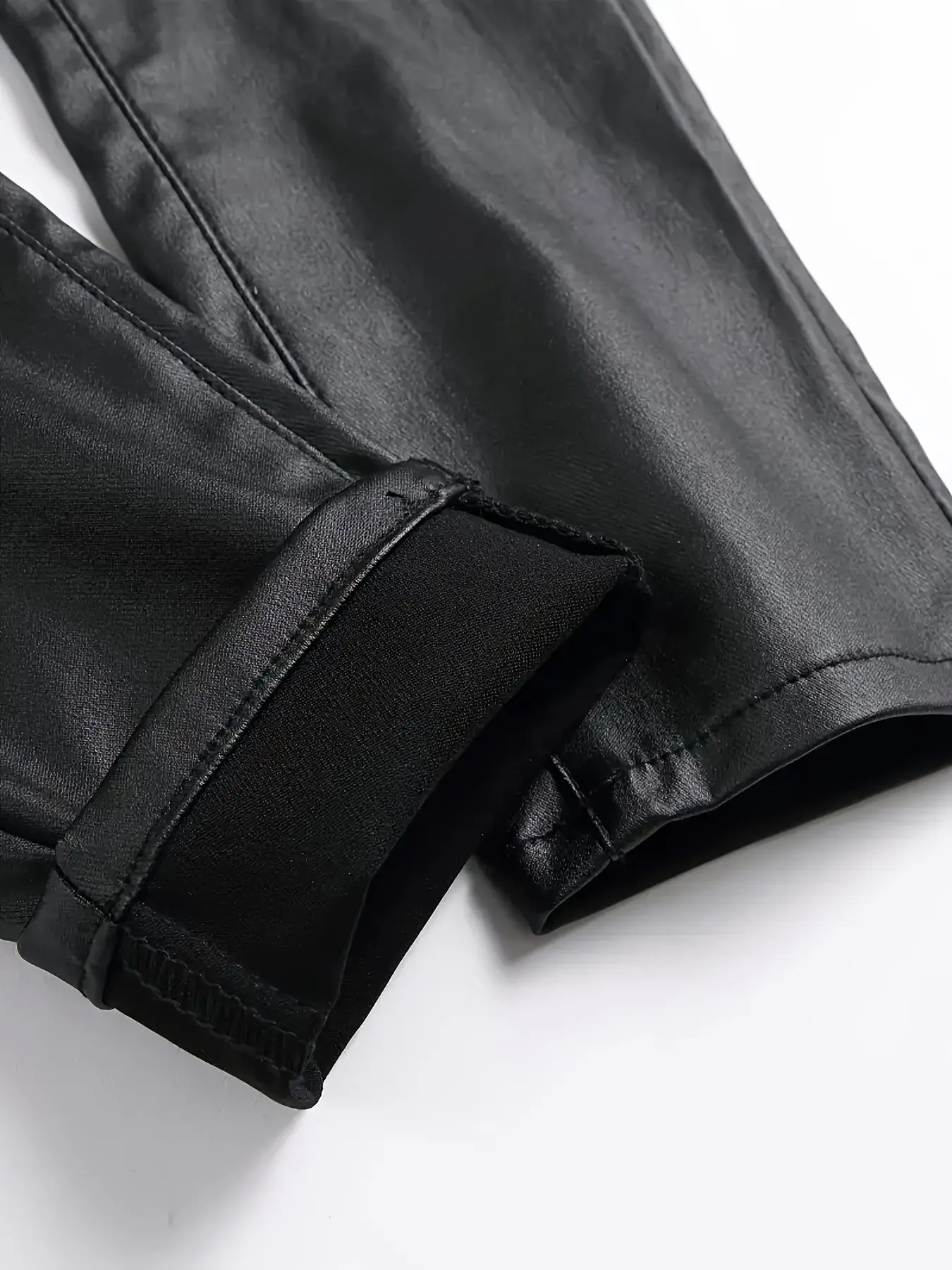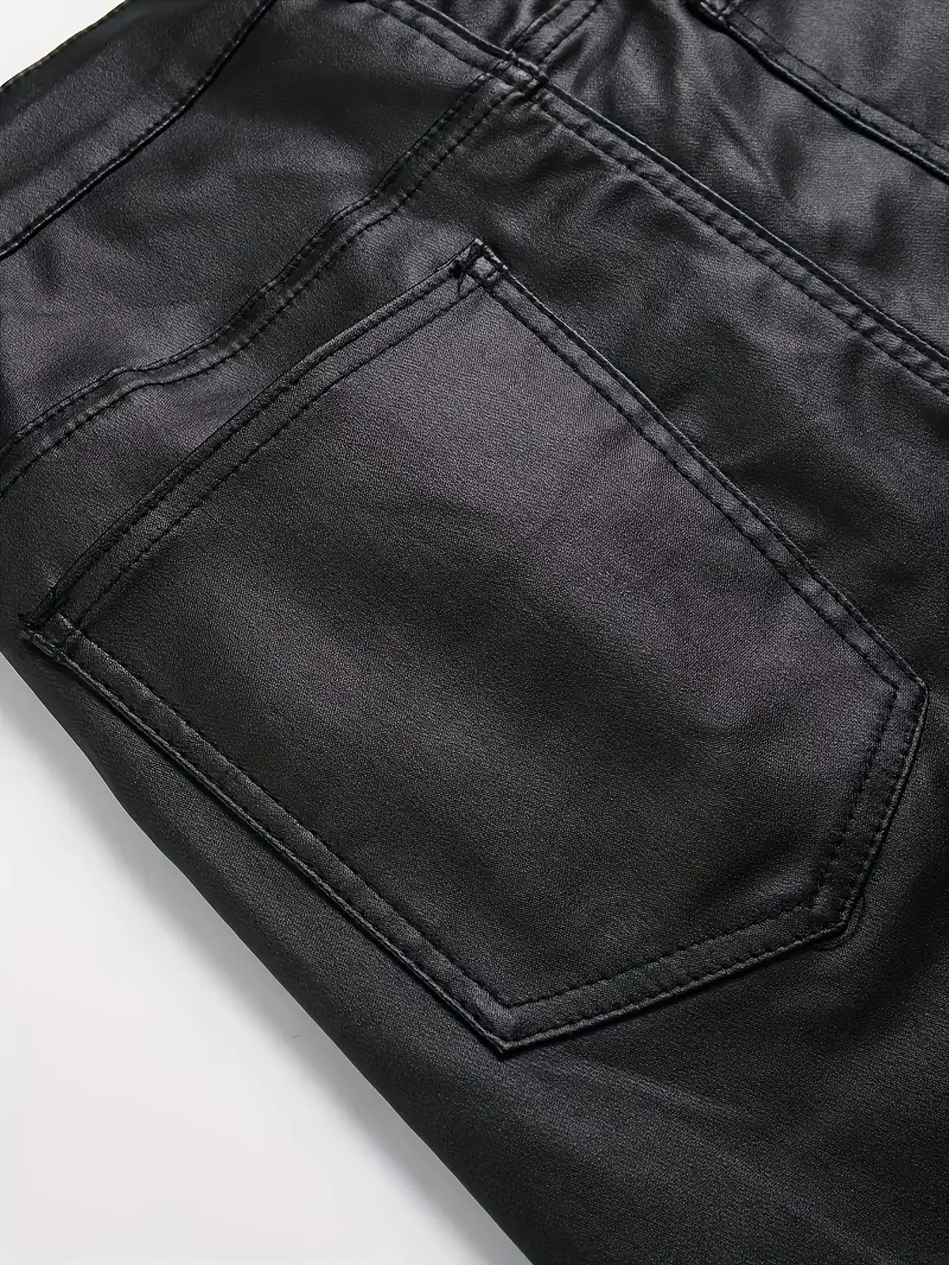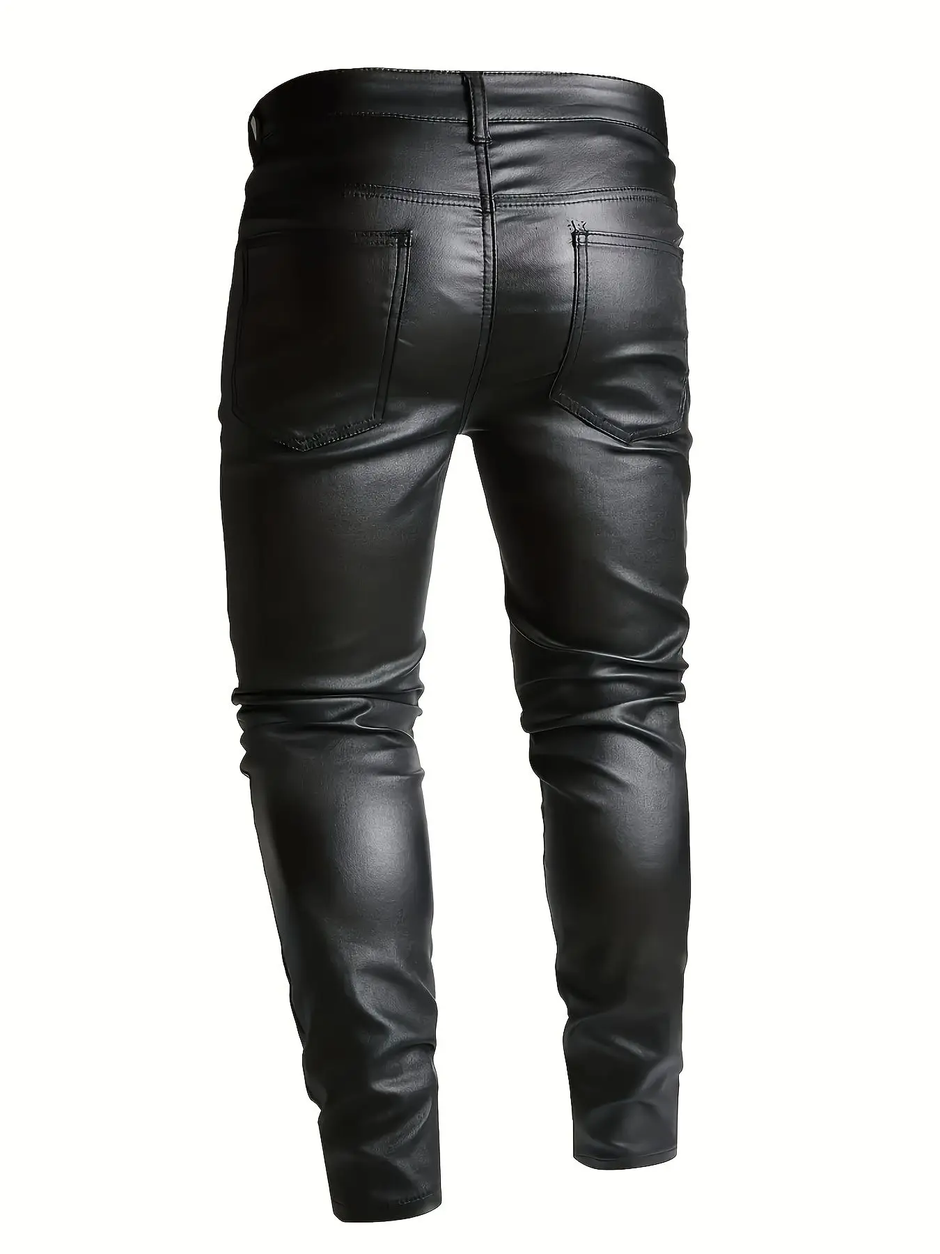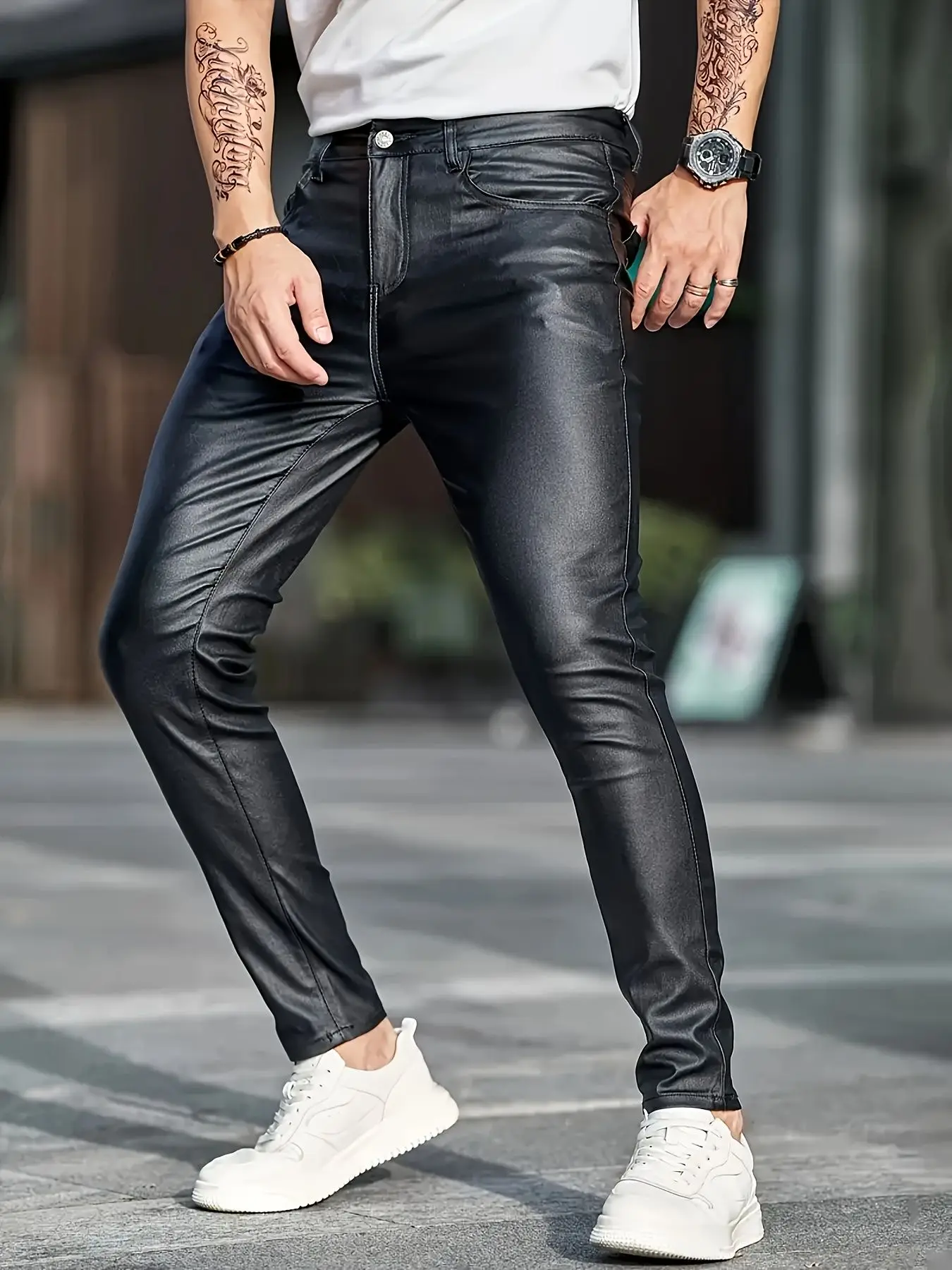 European and American men's plus size hot fashion black leather pants trend high-end slim fit small leg pants versatile pants
