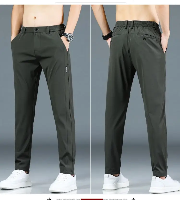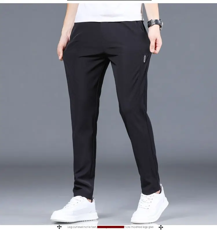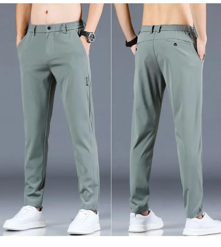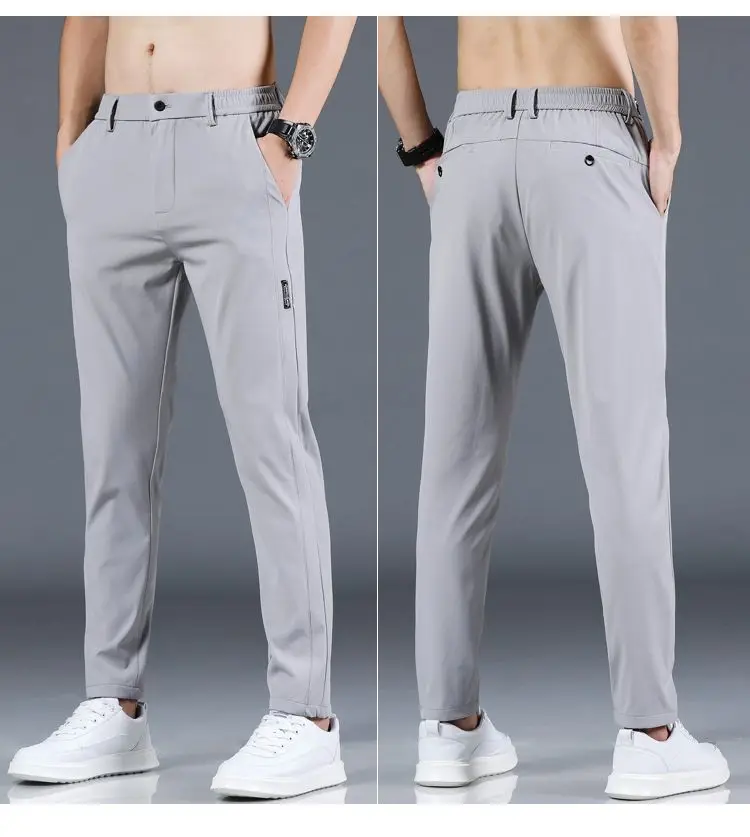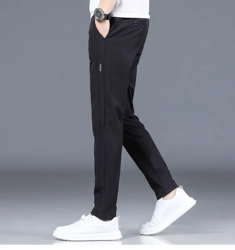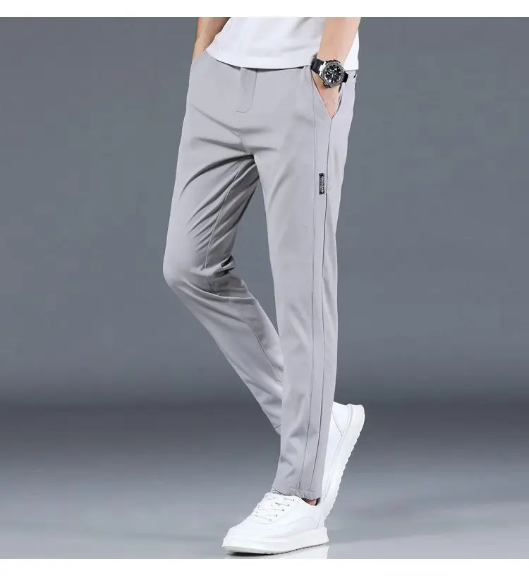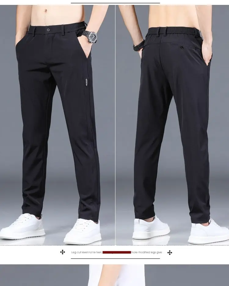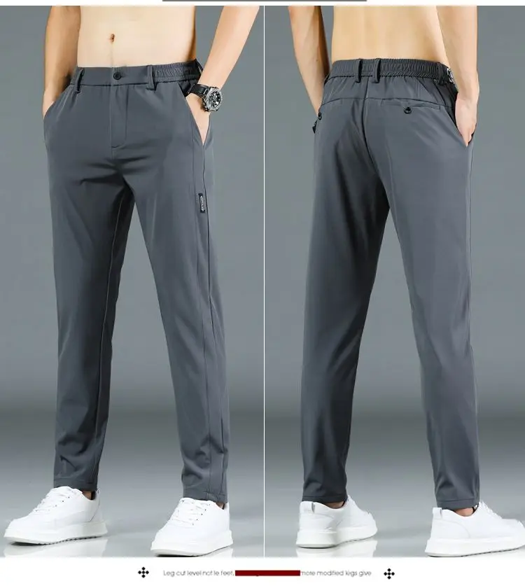 Ice silk men's pants 2025 summer new black gray thin business casual pants outdoor elastic breathable straight leg sports pants