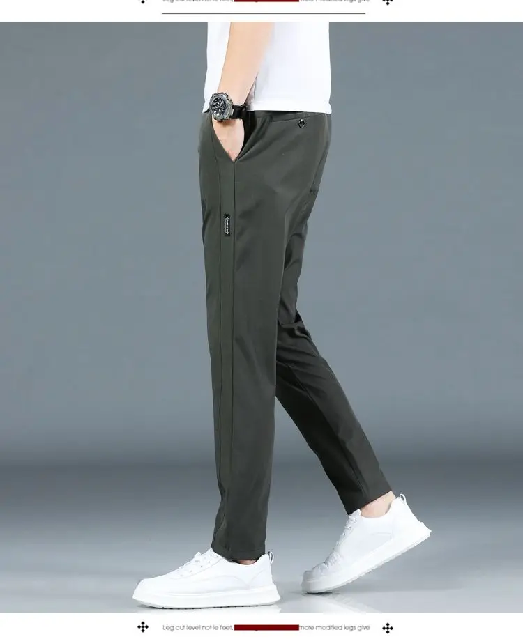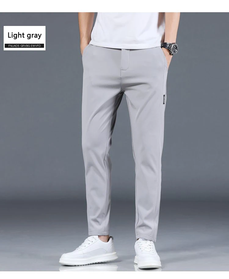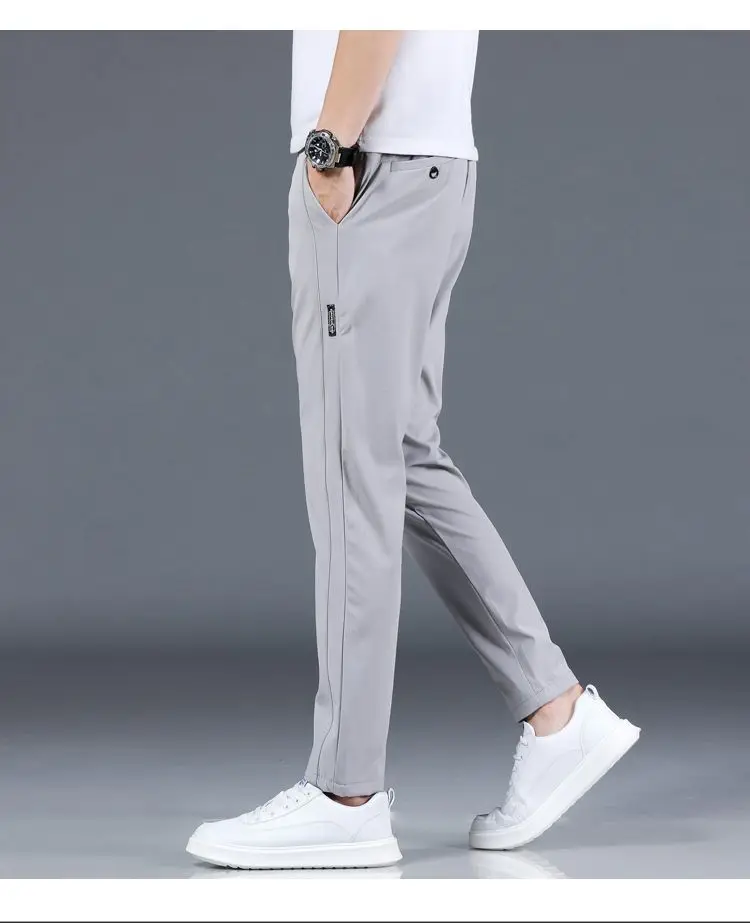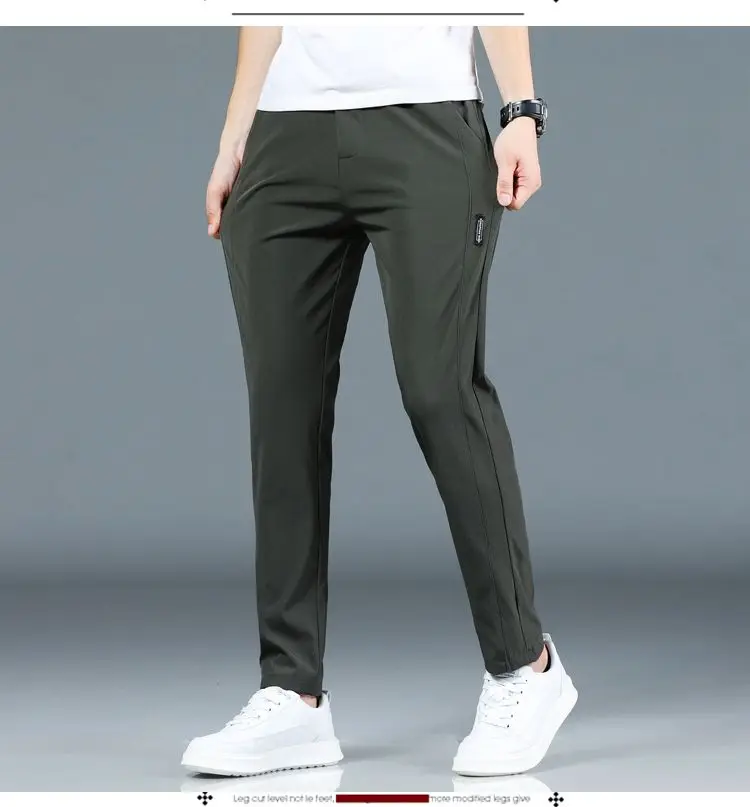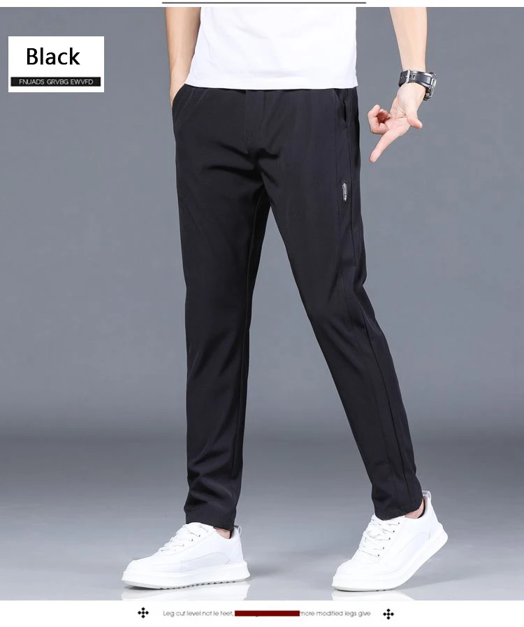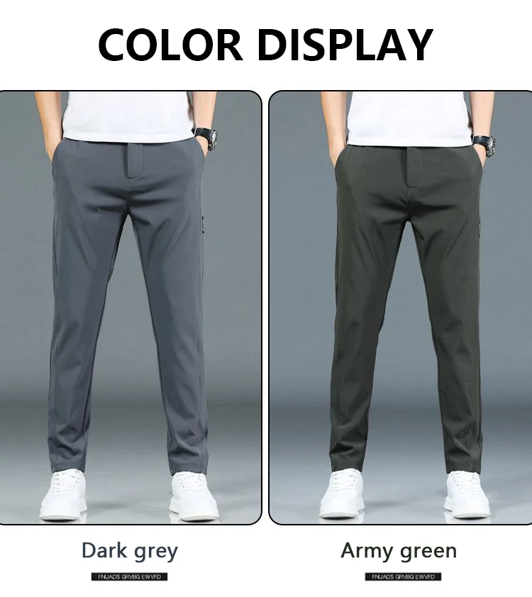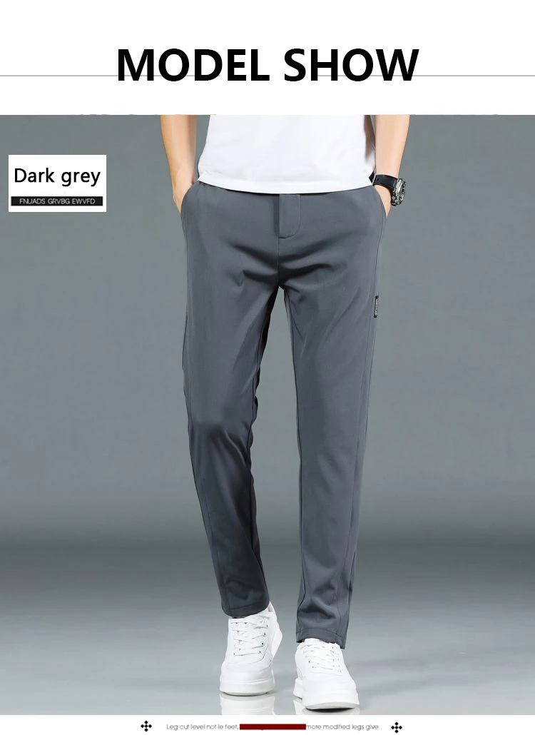 Ice silk men's pants 2025 summer new black gray thin business casual pants outdoor elastic breathable straight leg sports pants