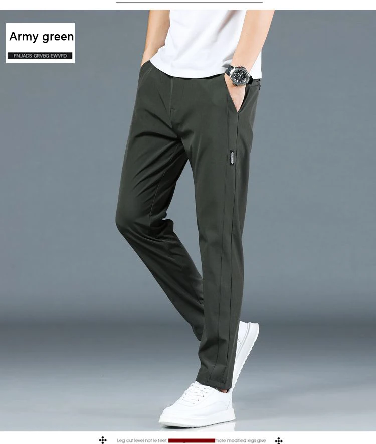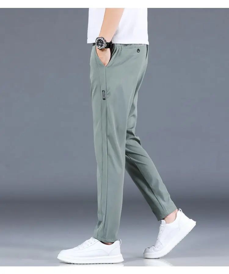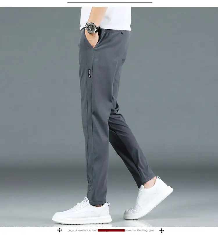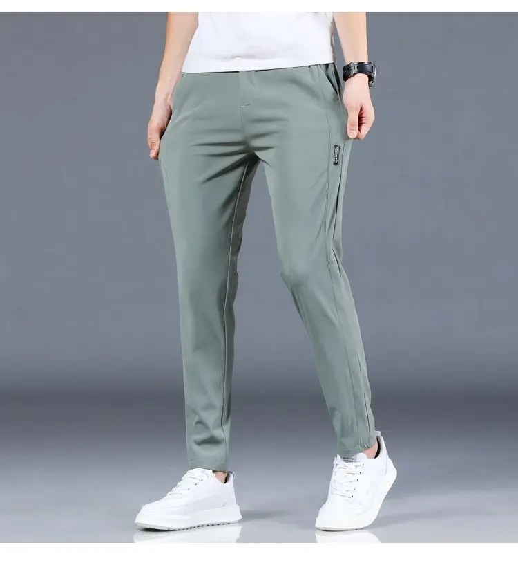 Crafted from ice silk, these pants offer a cool, lightweight feel perfect for summer wear.