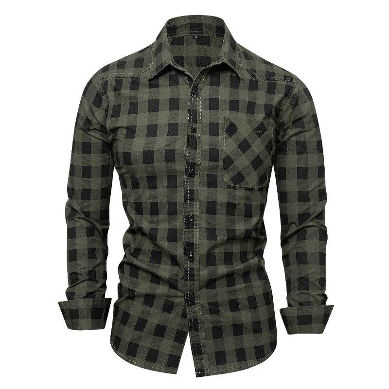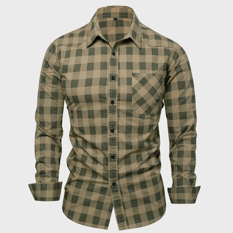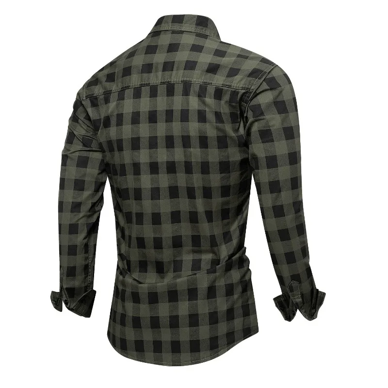 Men Long-sleeved Plaid Casual Shirts New Spring Male Military Outdoor Loose Cargo Shirts High Quality Man Cotton 100% Shirts 3XL