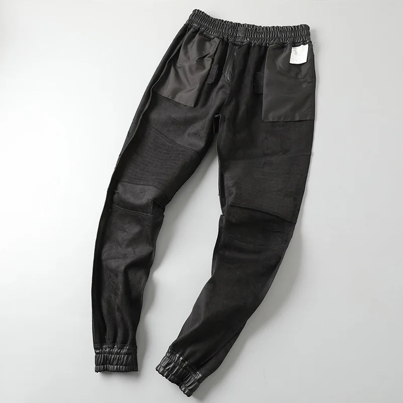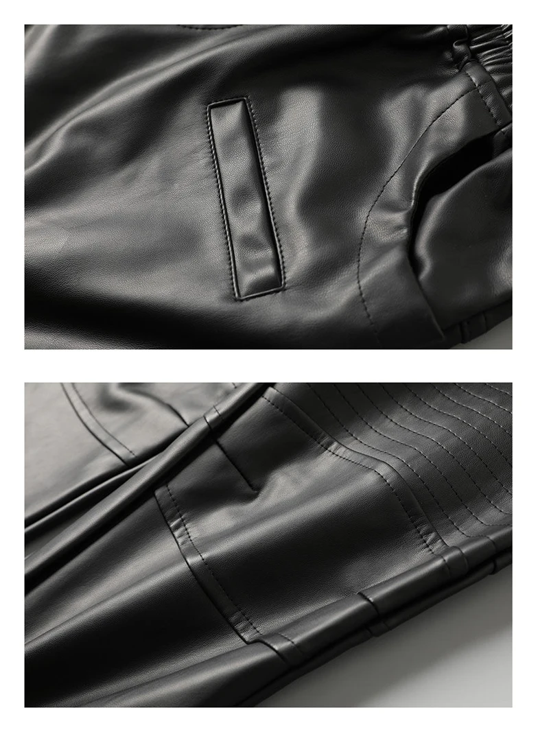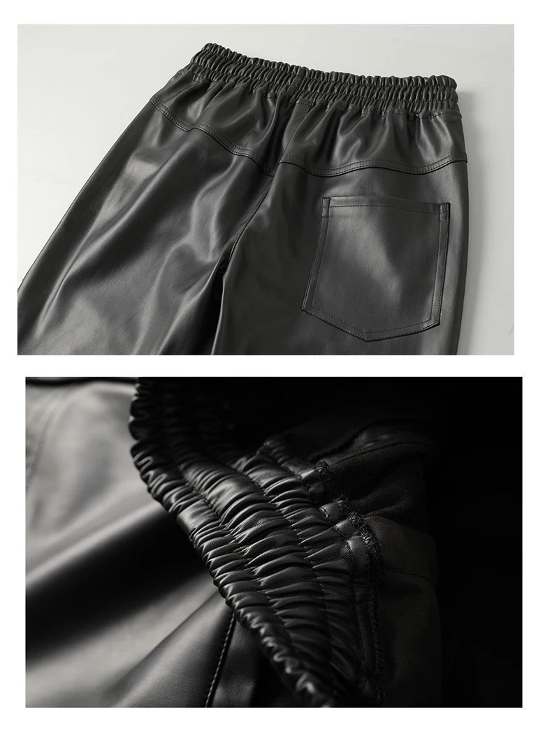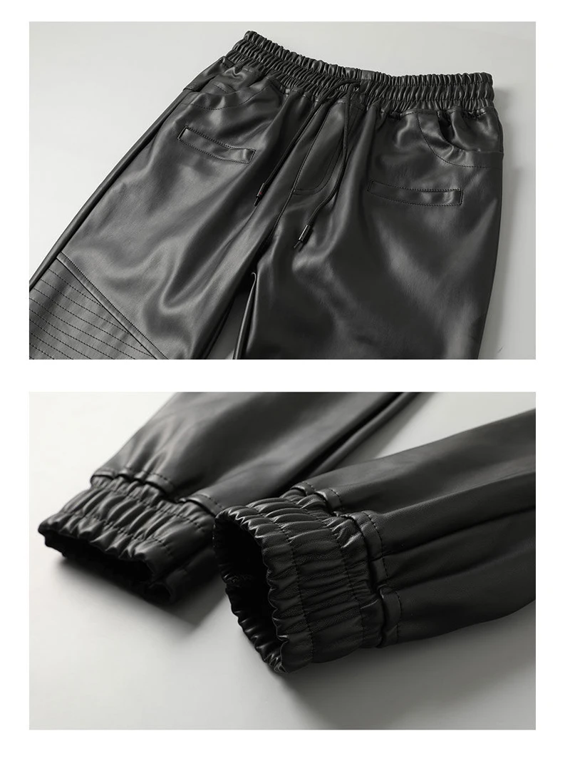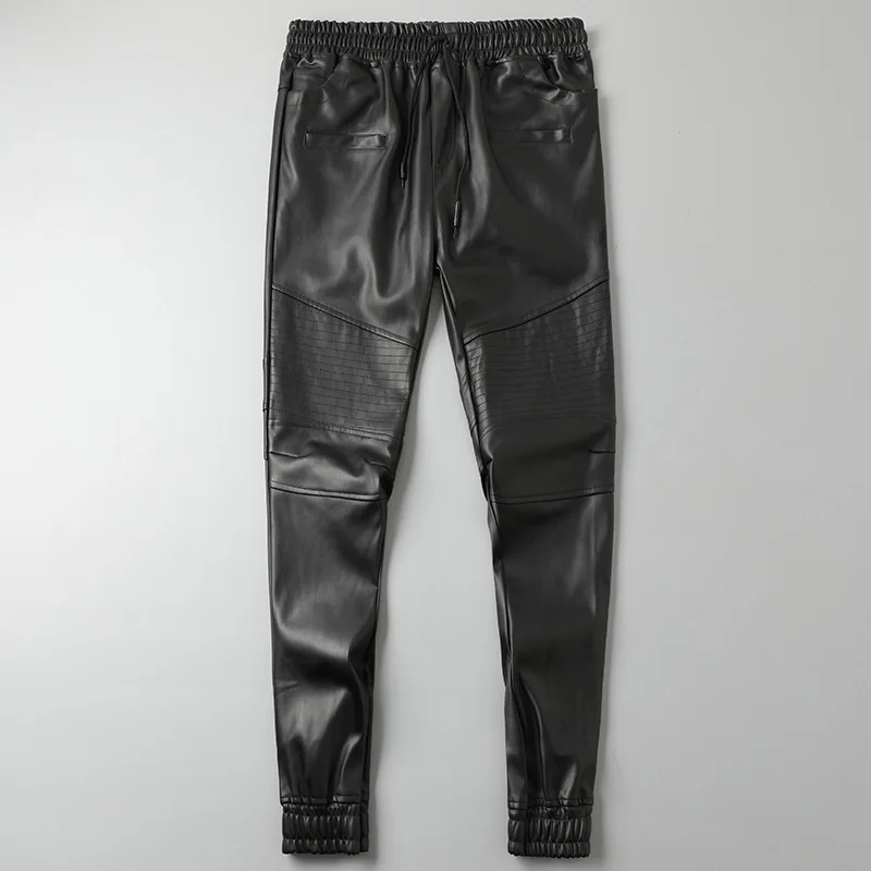 Men's Leather Pants Superior Quality Elastic Waist Jogger Pants PU Leather Trousers Biker's Pants Waterproof