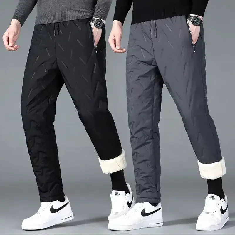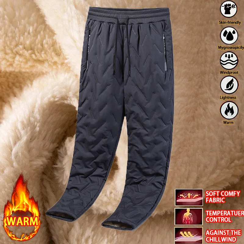 Outdoor Men Thick Fleece Baggy Pants Sherpa Lined Waterproof Sweatpants Windproof Casual Pants Lambswool Warm Active Trousers