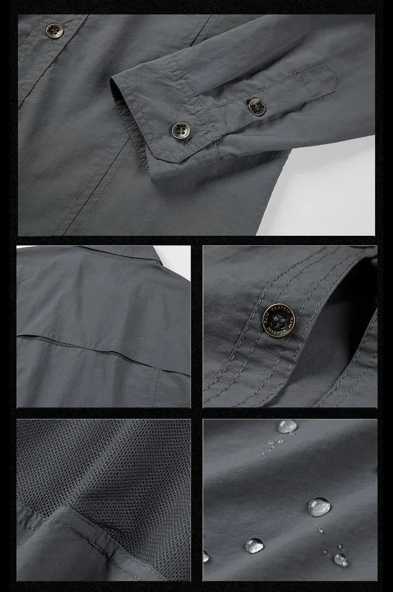 Sun Protection Fishing Shirts Men Quick Dry Long Sleeve Shirts Mesh Breathable Hiking Work Cargo Shirts Outdoor field suit