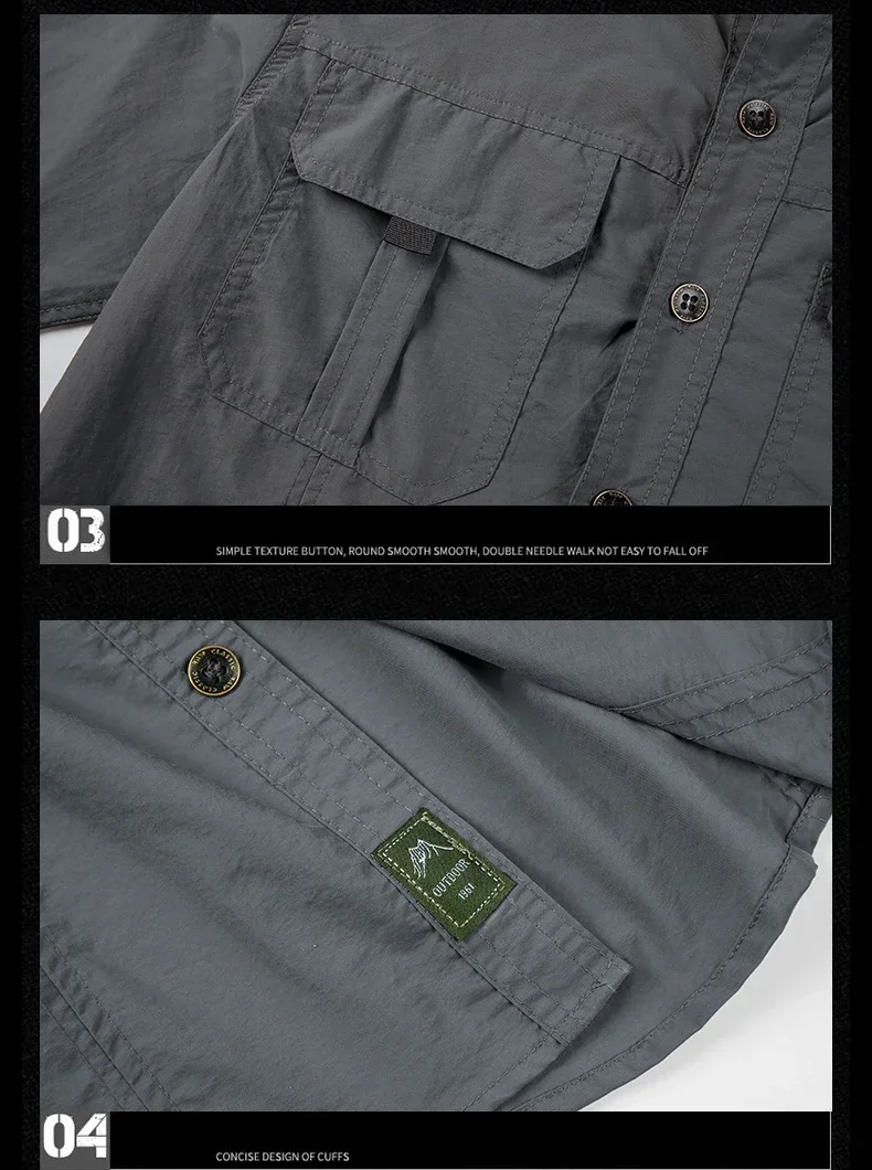 Sun Protection Shirt Quick Dry Long Sleeve Mesh Breathable Shirt Multi Pockets Fishing Shirts Hiking Work Cargo Shirts Tactical